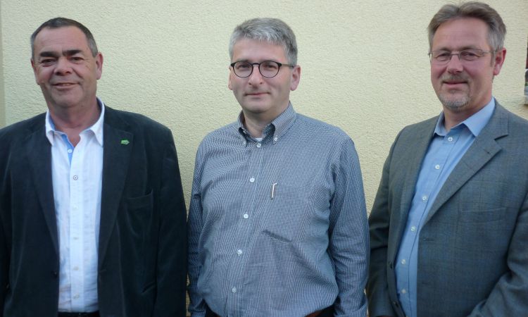 Der alte Fraktionsvorsitzende Heinrich Roßkopf (links) mit seinem Nachfolger Dirk Hensel (mitte) und Bürgermeister Thomas Raschel (rechts).