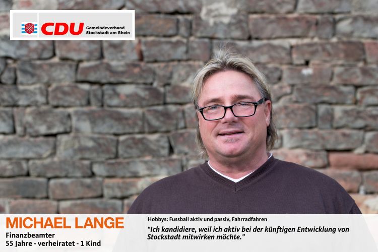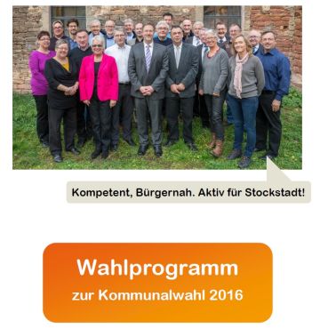 Das Wahlprogramm der CDU-Stockstadt wird zurzeit noch detailliert ausgearbeitet. Hierzu wurden die Arbeitskreise „Ortsentwicklung, Ortsbild und Friedhof“, „Wirtschaft und Finanzen“, „Vereine, Kultur und Asyl“, „Familie, Kinder und Bildung“ gebildet. Nach Fertigstellung soll das Wahlprogramm bei einer Veranstaltung der Öffentlichkeit vorgestellt werden.