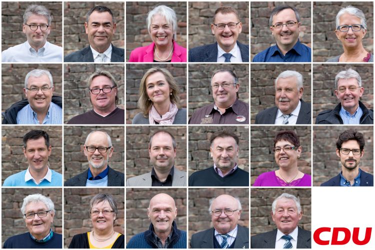 Angeführt wird die Liste auf Platz 1 von Dirk Hensel (Fraktionsvorsitzender), gefolgt von Heinrich Roßkopf (Vorsitzender des CDU-Gemeindeverbandes) auf Platz 2. Auf den Plätzen 3 und 4 folgen die stellvertretenden Fraktionsvorsitzenden Ursula Kresnicka und Horst Wenner, denen sich auf Platz 5 der Vorsitzende der Gemeindevertretung Luigi Urzo anschließt. Auf den weiteren Plätzen folgen 6. Ursula Kraft, 7. Andreas Schmidt, 8. Michael Lange, 9. Petra Pfeffer, 10. Achim Jung, 11. Klaus Unger, 12.Ernst Heil jr., 13. Björn Dech, 14. Michael Barth, 15. Michael Marsch, 16. Thomas Seidel, 17. Heike Roßkopf, 18. Nils Rückert, 19. Günther Kresnicka, 20. Veronika Meister, 21. Karlheinz Grund, 22. Andreas Macus, 23. Günther Hammann.